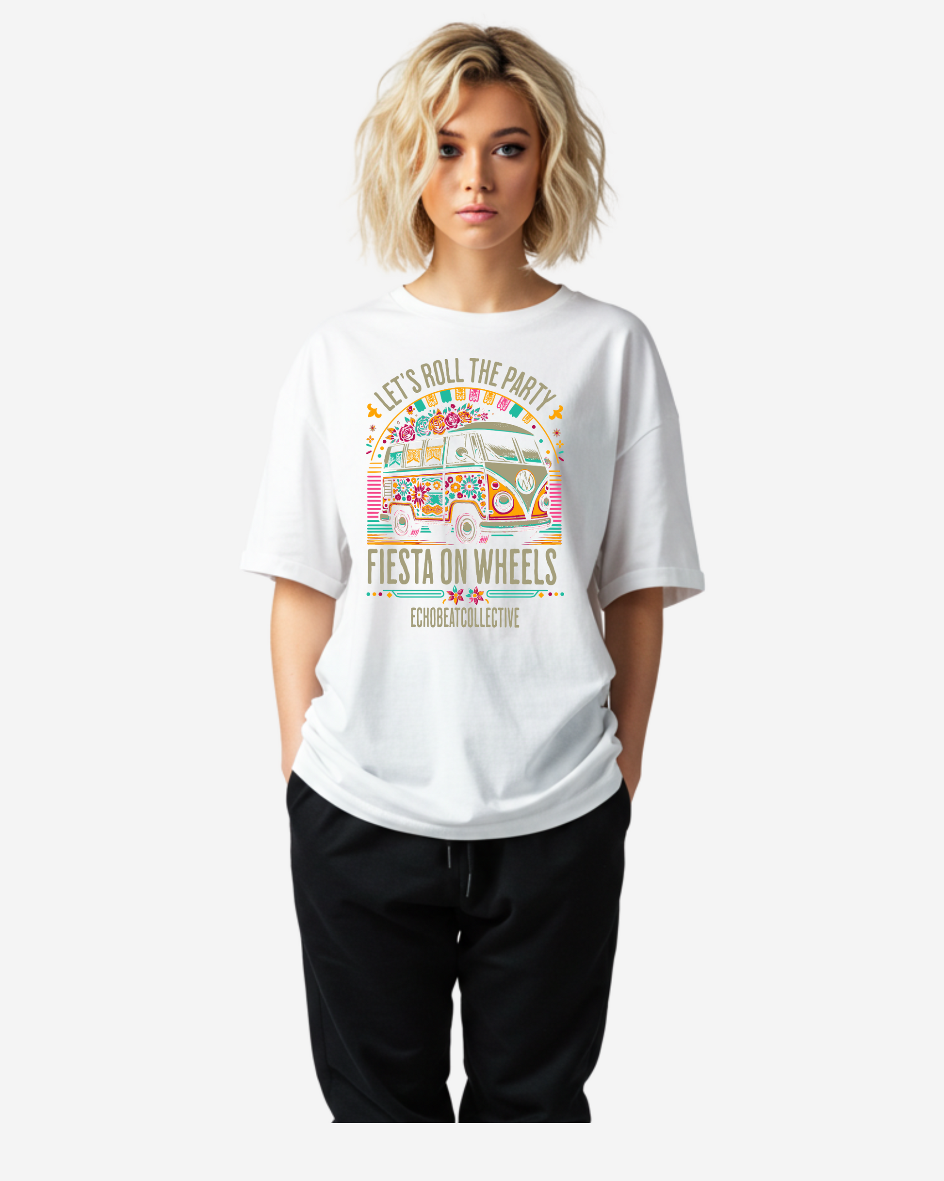 Get the party rolling with the Fiesta on Wheels Women's Oversized T-Shirt – a fun, vibrant tee that captures the spirit of celebration and adventure. Featuring a lively graphic bursting with colorful wheels and festive vibes, this shirt is perfect for those who love to keep the good times moving.