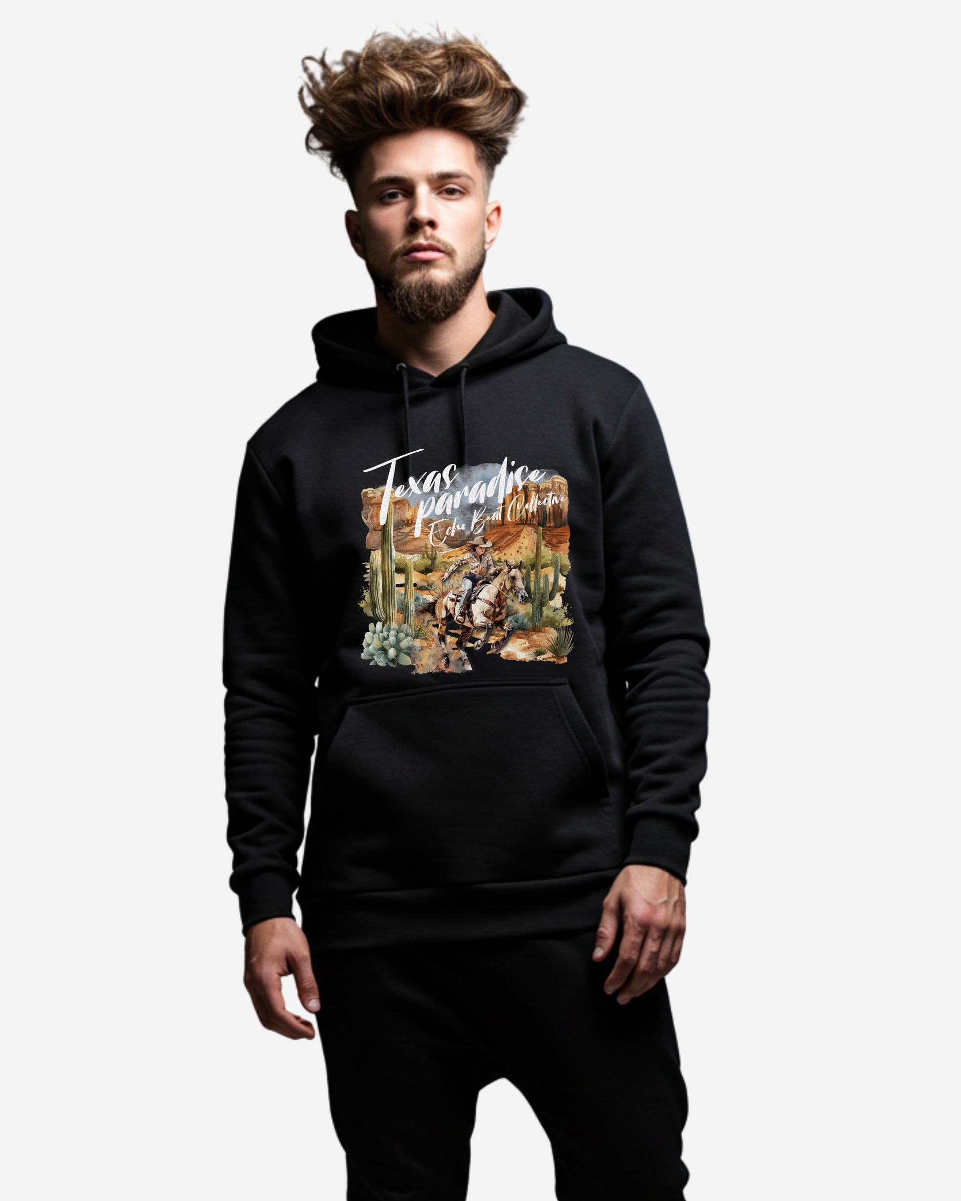 Step into western charm, rugged adventure, and timeless cowboy spirit with the Texas Paradise Men's Oversized Hoodie, a design that encapsulates the bold essence of the open frontier. Featuring a dynamic watercolor desert landscape with towering rock formations, scattered cacti, and golden hues, this hoodie embraces the warmth, vastness, and beauty of Texas scenery.